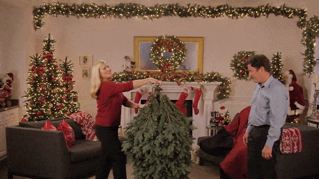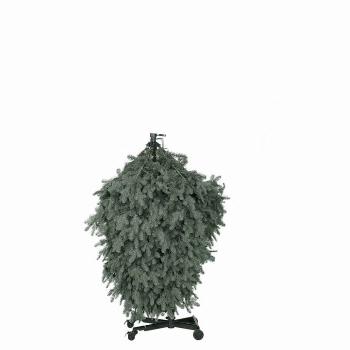 Simply roll the tree into place on its wheeled base, lock it securely, flip it upright, and attach the lightweight top—no heavy lifting required.